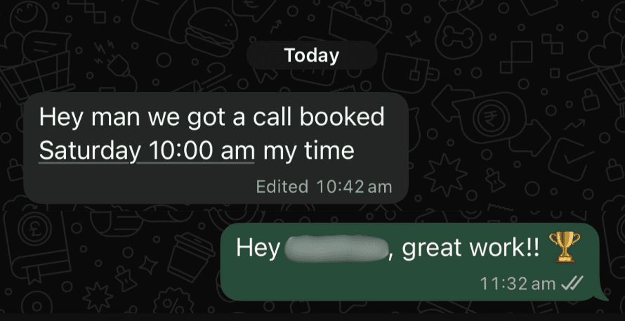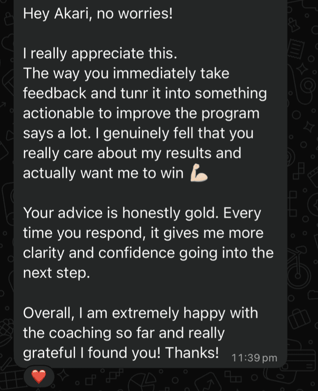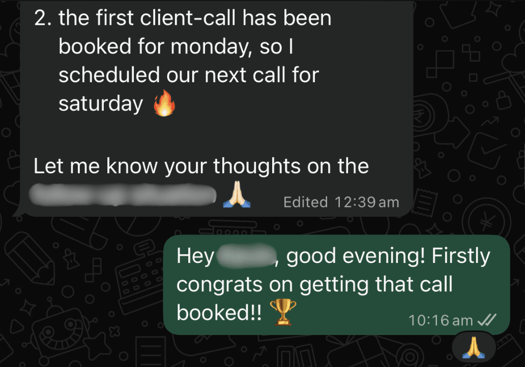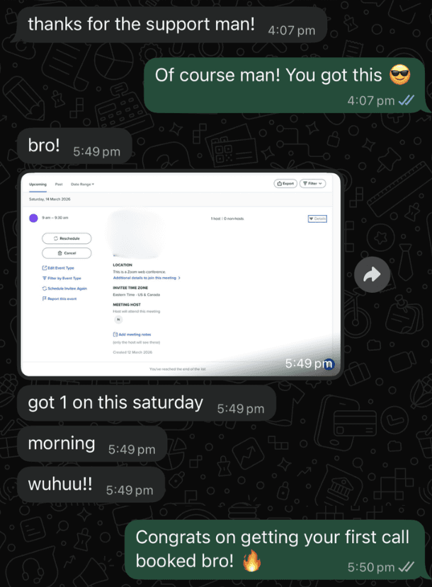 Weekly 1-on-1 coaching calls + direct WhatsApp access